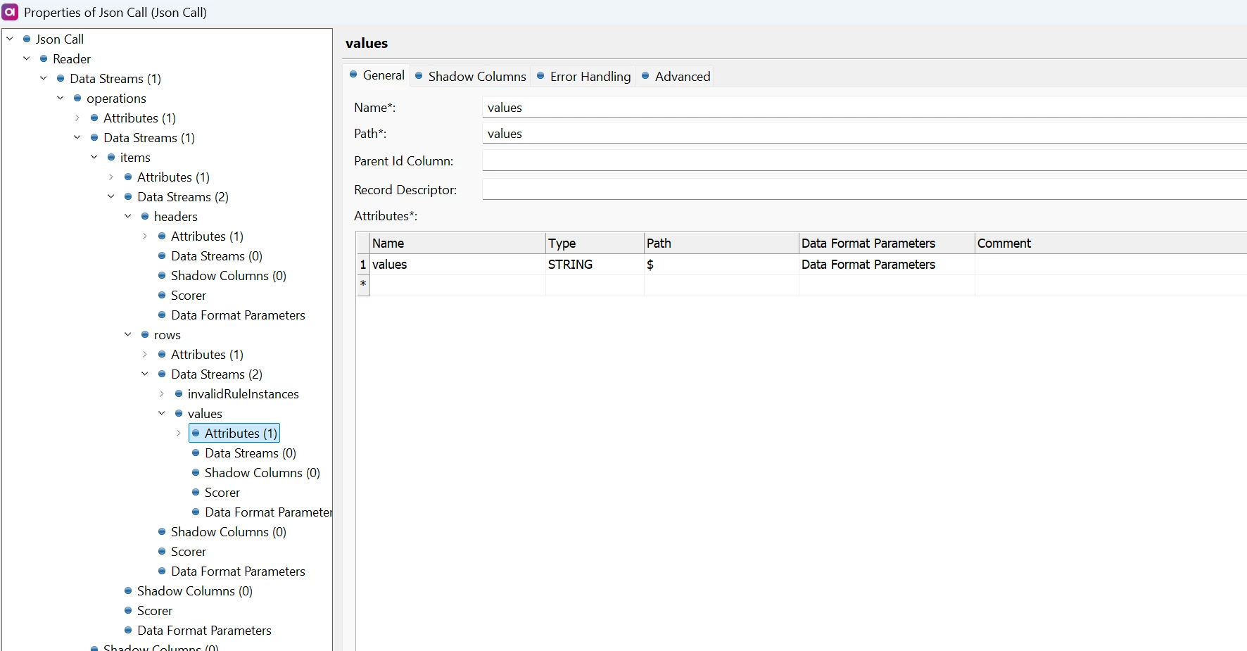 Not like any other array in JSON, the values array does not have key - value structure. Instead, it is like values: (array) 0: <no key> only values. When I run ONE Desktop Plan, I am only getting blank rows. Please help Thanks.