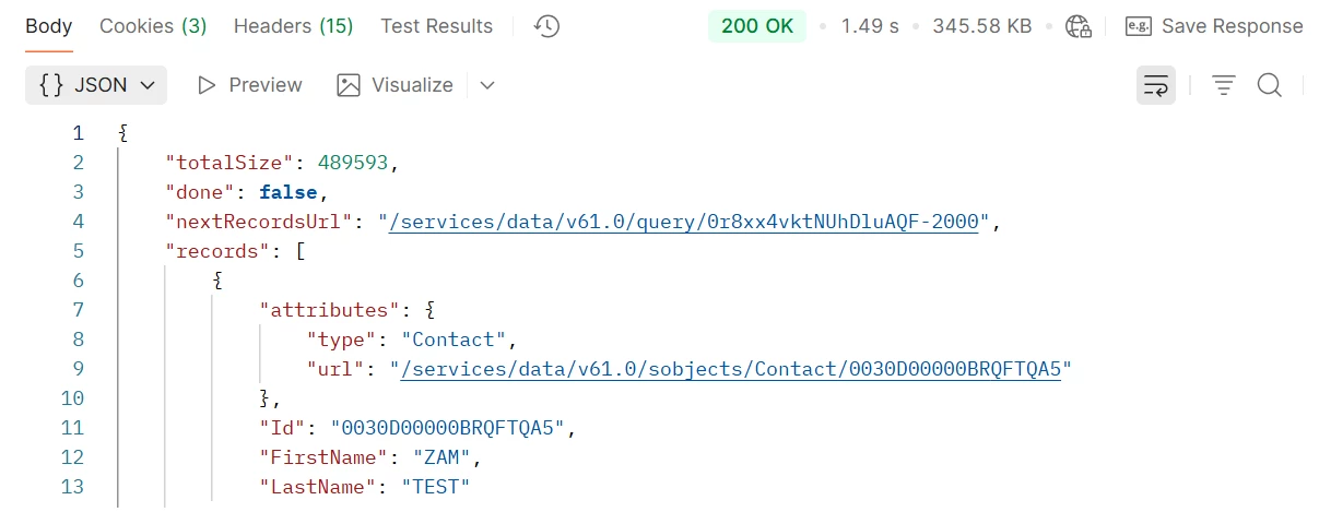 I need to consume my entire REST API using the next record URL until done is set as true.