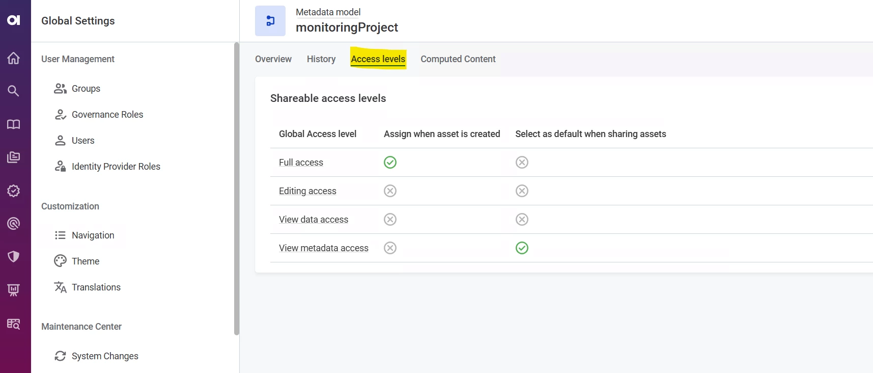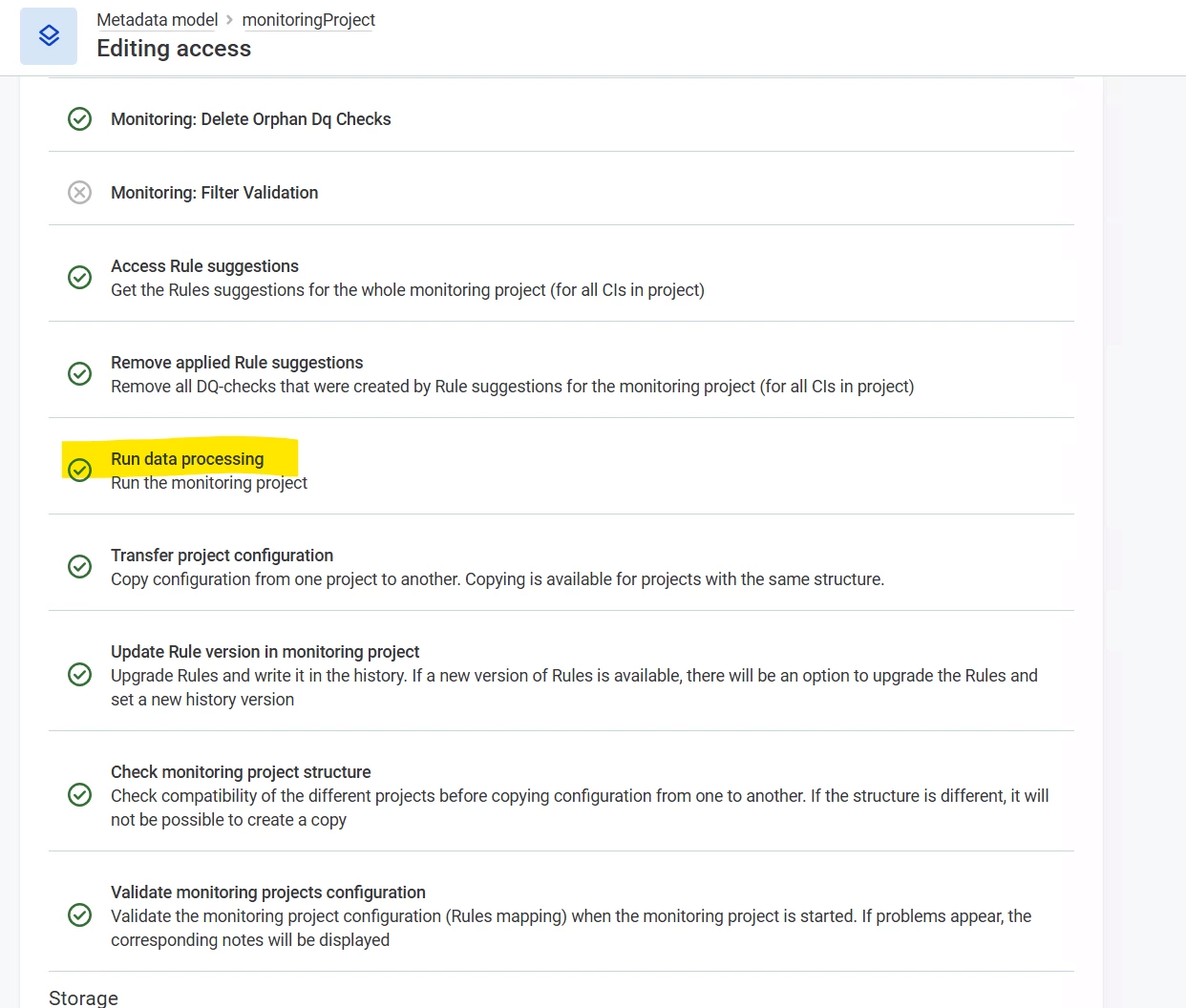 I tried looking at documentation, seems like for Monitoring Project, the levels of view metadata access and view data access doesn’t allow running the project, while full access can. However full access also gives editing rights to monitoring projects which we don’t want to allow.